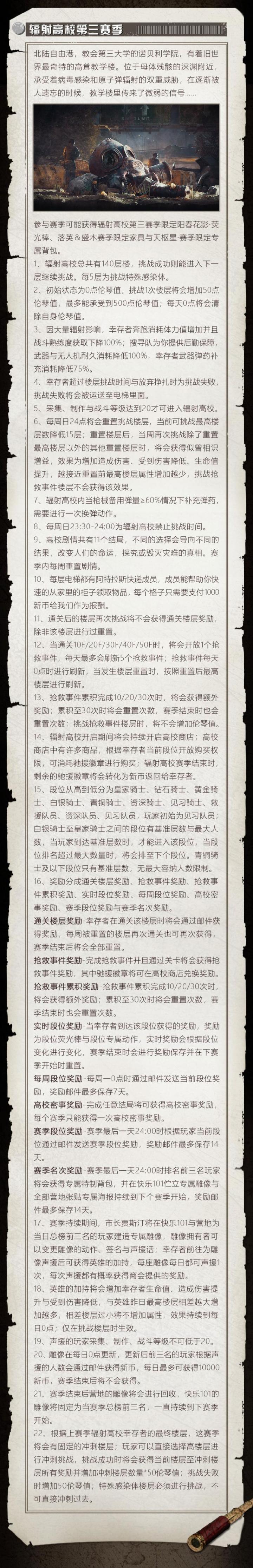 1.辐射高校第三赛季开启,后者快英雄联盟科技卡盟加速器诺贝利学院之谜等你探索!幸存英雄联盟逆风局翻盘
